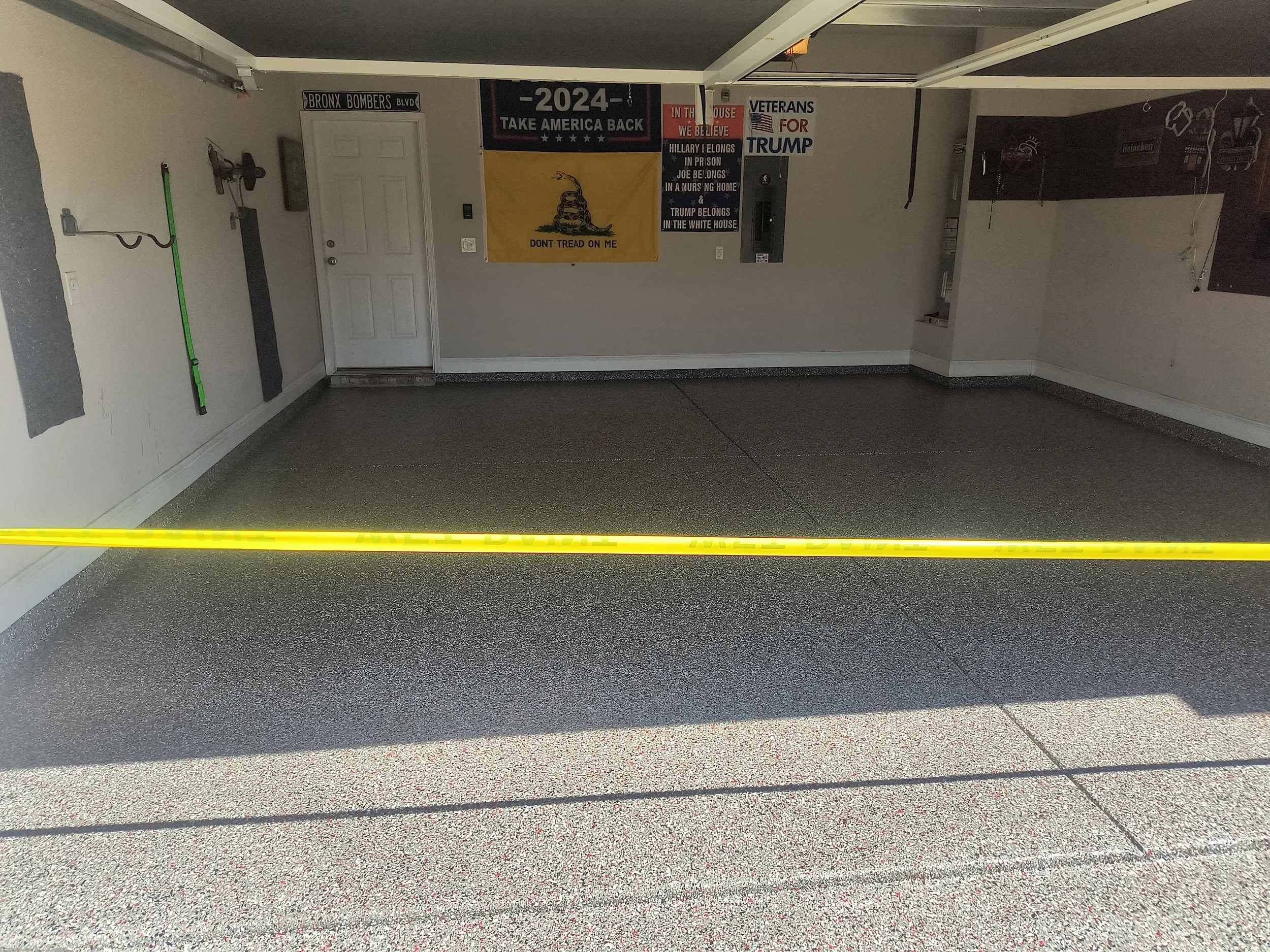 “The salesman John was friendly, professional and a fellow Vet who gave good advice about colors to choose and about the labor/price for this type of product. I feel good knowing the product is top notch and will enhance and protect the concrete surfaces in my garage and screened in porch. The project was completed in one day. The crew was professional, friendly and very efficient. The covering transforms the whole area. Looks sharp.”